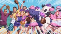 After being absorbed into Creatureland, the Maidaliens were rebranded into an Axolotl-themed maid café. As they hold a funeral for Manami, the Oinky Doink Manager comes to pay her respects with the Debt Collector, but ends up upseting them. Nagi then arrives and, while wielding Manami's signature bat, orders both sides to settle their grievances with a baseball game. Nagomi is elated that the maids can engage in a peaceful match, but with the café short the minimum number of baseball players, the Manager is forced to hire three Venezuelans (José, Luis, Antonio) to fill out her side. The Oinky Doink team gets off to a hot start, though the Venezuelans are not ballplayers, but tourists in Akihabara at the time. With her team behind, Ugaki orders her team to start cheating, and one of the Axolotl maids strikes Nagomi on the head with a bat.