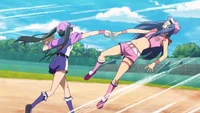 The game soon turns into a brawl, despite Nagomi's efforts to focus on the baseball game itself. However, a couple of Axolotl maids grow impressed with her resolve and start ignoring their manager's cries. Ugaki herself decides to step in and attack Ranko with a bat, but is knocked down by Zoya. Suddenly, Ugaki is backstabbed by her Axolotl mascot, who turns out to be Miyabi, shortly before getting stabbed with her dagger. However, the Axolotl team pretended they were both still alive to finish the game, which Ranko wins with a final strikeout. After the game, Ranko meets with Nagi, recognizing her as her sworn sister from 15 years ago. Nagi tells her that she should have fought for their mistress in the past, and now must fight for the sake of her group otherwise, she'll have no place in Akiba.